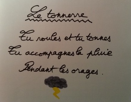 Le Tonnerre Publié le 28 septembre 2016 par Ekwo Tu roules et tu tonnes Tu accompagnes la pluie Pendant les orages Évaluez ceci :Partageation avec du mondeTweetPartager sur Tumblr Cliquez pour partager sur Reddit(ouvre dans une nouvelle fenêtre) Reddit Cliquez pour partager sur WhatsApp(ouvre dans une nouvelle fenêtre) WhatsApp J’aime chargement… Similaire