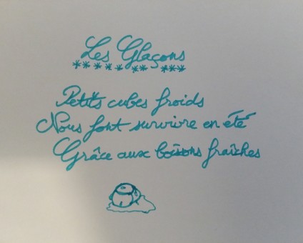 Les Glaçons Publié le 21 juin 2017 par Ekwo Petits cubes froids Nous font survivre en été Grâce aux boissons fraîches Évaluez ceci :Partageation avec du mondeTweetPartager sur Tumblr Cliquez pour partager sur Reddit(ouvre dans une nouvelle fenêtre) Reddit Cliquez pour partager sur WhatsApp(ouvre dans une nouvelle fenêtre) WhatsApp J’aime chargement… Similaire